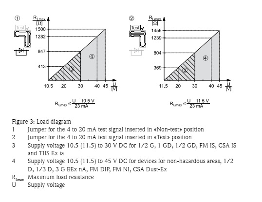 Load – 4 to 20 mA and 4 to 20 mA HART (See Fig. 3)