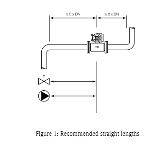 اگر فلومتر در فاصله کوتاهی از یک اغتشاش پروفیل جریان نصب شود، به علت ورود پروفیل جریان مختل به داخل فلومتر، خطا در اندازه گیری رخ خواهد داد. بنابراین فلومتر باید طبق توصیه های نصب با طول کافی لوله مستقیم در بالا و پایین دست نصب شود. طول های توصیه شده از مرکز فلومتر اندازه گیری می شوند که در قطرهای کوچک معمولاً طول مستقیمی که در داخل خود دستگاه وجود دارد کفایت می کند.